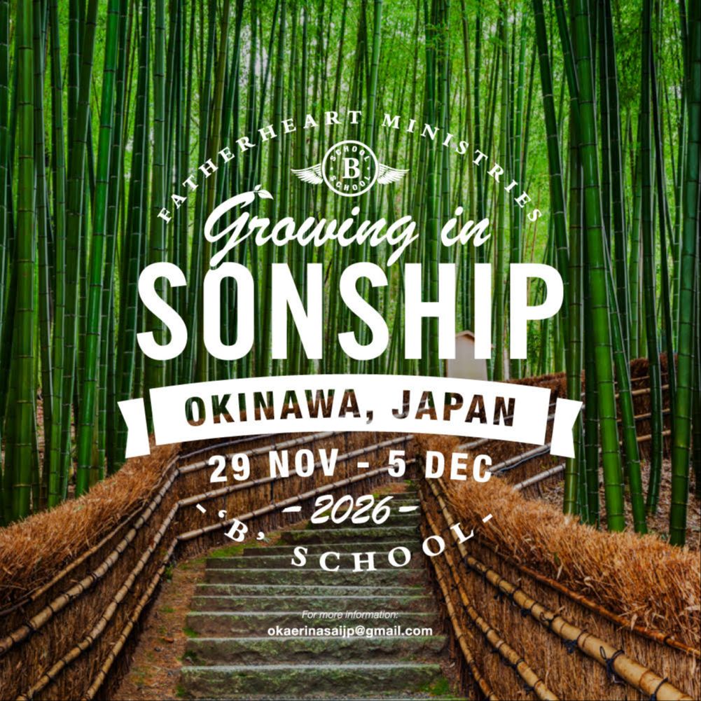 The Fatherheart Ministries B School in Okinawa, Japan is a one-week revelational adventure into the very heart of God, designed for those who have already encountered His love in an A School and are hungry to go deeper. From November 29 - December 5, 2026, we will gather at House of Creators. In this safe family environment of worship, teaching, and ministry, you will step further into sonship and discover more of what it means to live every day as a deeply loved son or daughter, not an orphan.